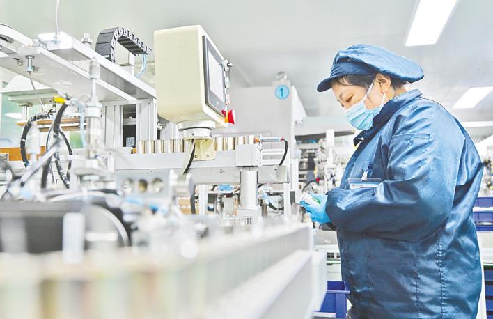 宜昌猇亭华麟钛新能源有限公司,工人们紧盯自动化生产线,全力以赴赶制生产订单。(刘曙松、谭雪姣 摄)