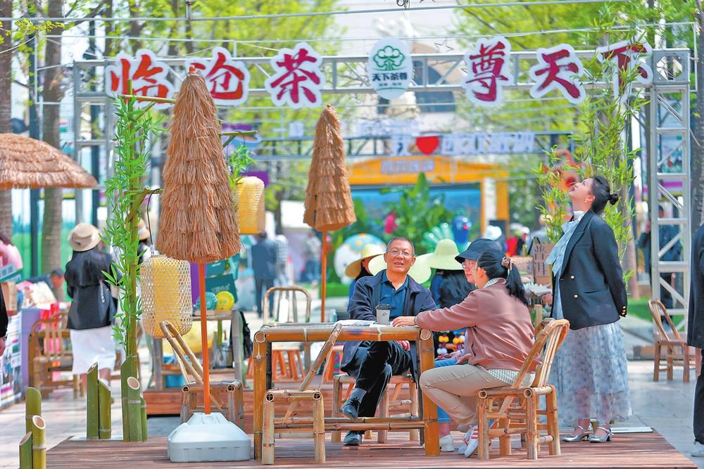 图为市民游客品尝选购茶叶。陈飞 摄