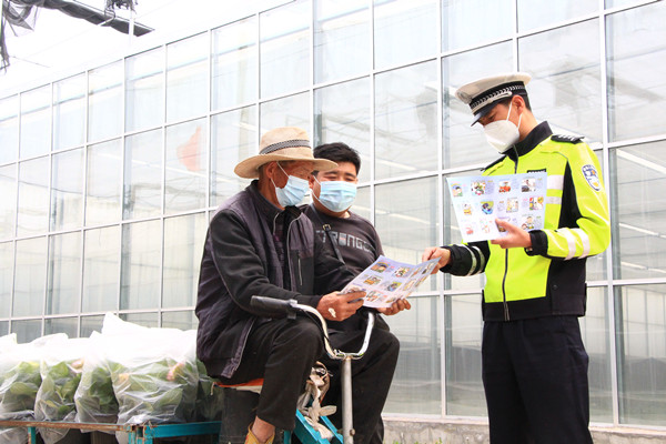 “五一”假期来临,徐州交警一手抓牢疫情防控,一手抓实交通安全,结合农村地区使用农用车、货车、拖拉机等交通工具的实际情况,开展“美丽乡村行”交通安全宣传活动,通过发放疫情期间文明出行资料、农用车安全保障手册、讲解交通事故案例等形式,让农民朋友了解无证无牌驾驶、客货混载、拖拉机违法载人等交通违法行为的危害后果,切实做到疫情防控和安全复工复产两不误。