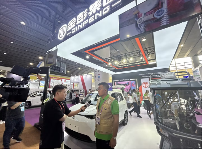 而金彭“可爱风”小型纯电电动车YD则受到众多女性采购商的青睐;金彭YD凭借其可爱的外观、独特的驾驶感,成为了本届广交会新能源展馆互动次数最多的微型电动车。